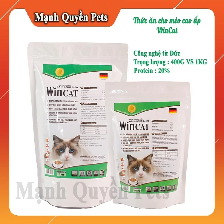 Thức Ăn Cho Mèo Cao Cấp, Hạt Cho Mèo WinCat Công Nghệ Đức - 400G vs 1Kg