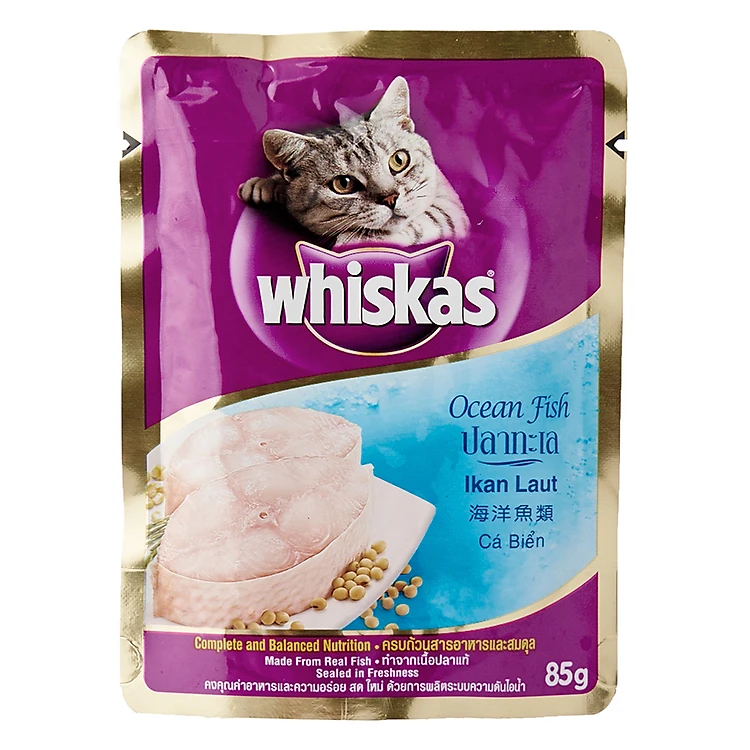 - Thức Ăn Cho Mèo Vị Cá Biển Pate Whiskas (85g) được chế biến với hương vị thơm ngon, mang lại nguồn dinh dưỡng và khoáng chất dồi dào, bổ sung Taurine và amino axit cần thiết cho mèo.