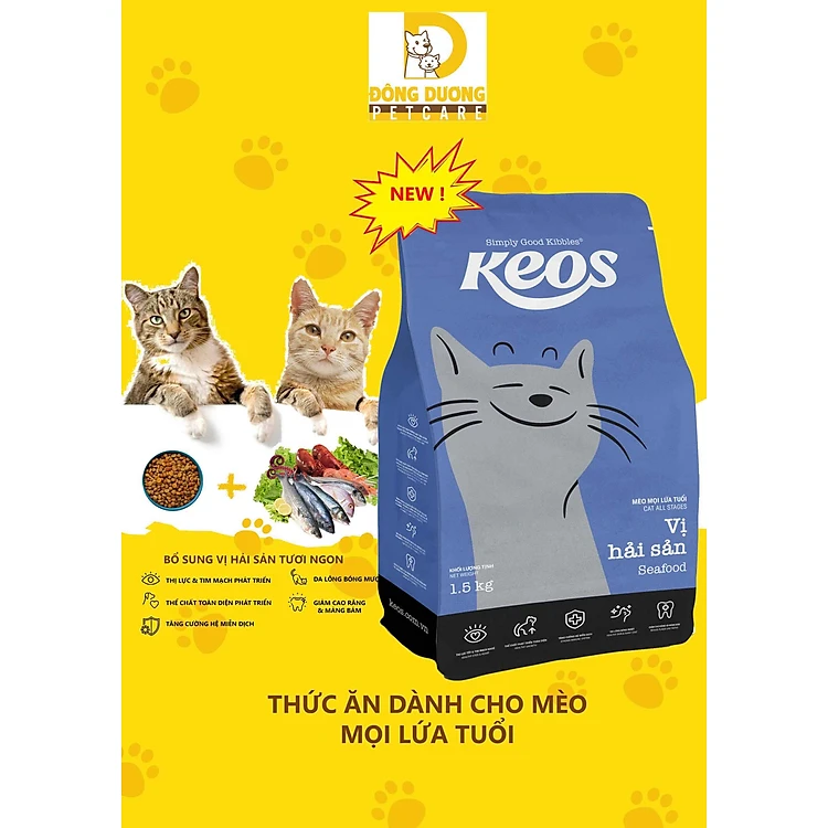 Thức ăn hạt Keos dành cho mèo mọi lứa tuổi vị hải sản gói 400g - 1.5kg