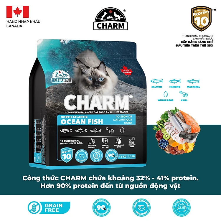 Thức Ăn Hạt Mèo cao cấp Cá Đại Dương CHARM North Atlantic Ocean Fish Cat Food Canada - CHỌN:
