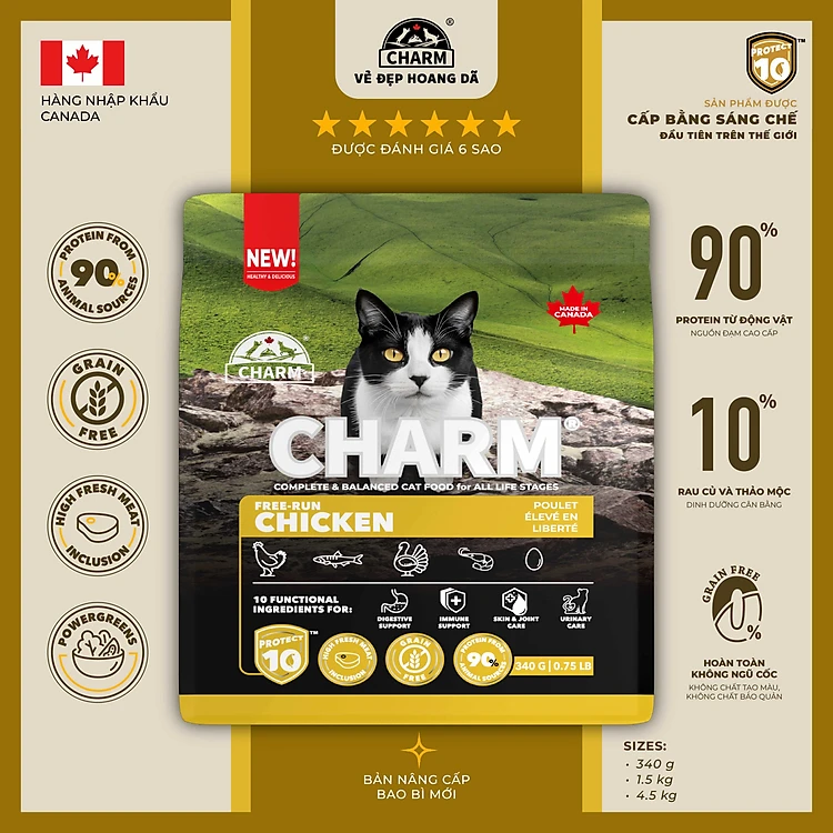Thức Ăn hạt Mèo cao cấp Gà Cá CHARM Cage-Free Chicken Cat Food Dry food Canada - CHỌN: