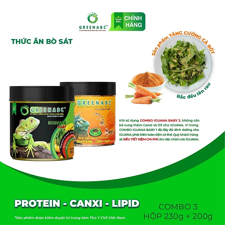 Thức ăn IGUANA BABY Cà Rốt GREENABC. Dành cho từ mới nở cho đến 9x, tăng size, màu đẹp – Hộp 230g