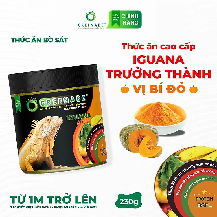 Thức ăn IGUANA Trưởng Thành Bí Đỏ GREENABC - Dành cho Igu từ 1m trở lên, gai bung màu đẹp – Hộp 230g