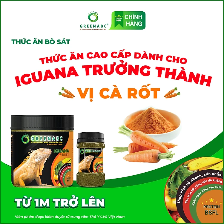Thức ăn bò sát Iguana Trưởng Thành GREENABC vị cà rốt dùng cho Iguana từ 1m trở lên giúp gai bung, gù cao, dáng đẹp, lên màu tươi – Hộp 230g