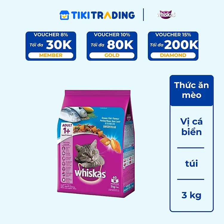 Thức Ăn Mèo Vị Cá Biển Whiskas (3Kg)