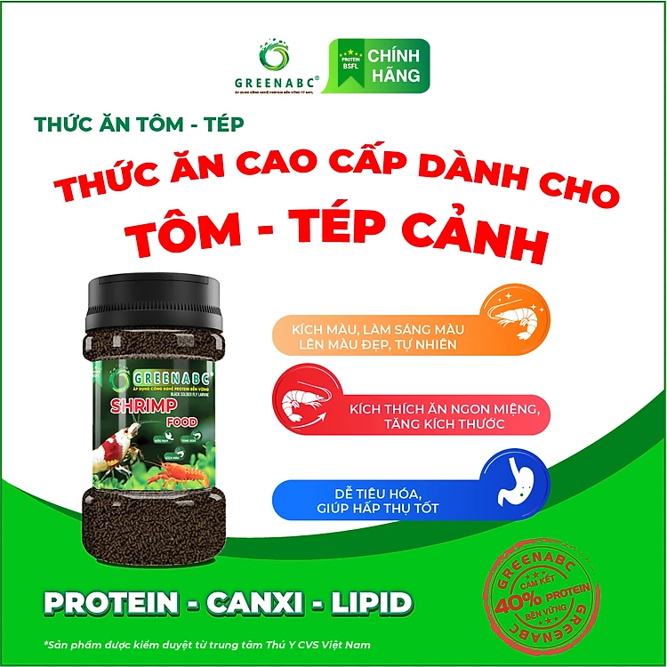 Thức ăn Tôm Tép cảnh GREENABC - Protein 40, kích màu, lên màu đẹp, dễ tiêu hóa, tăng đề kháng - Hộp 68g