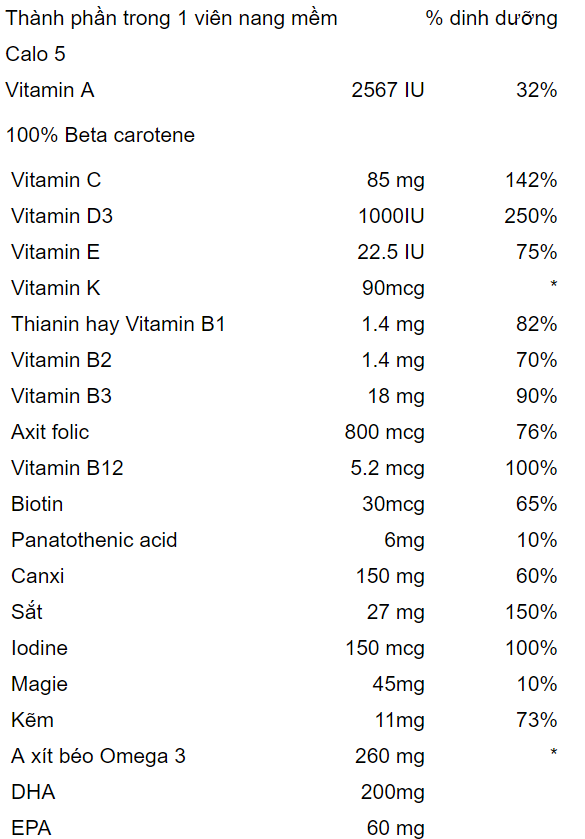 Thành phần thuốc bổ Prenatal Multi + DHA 150 viên