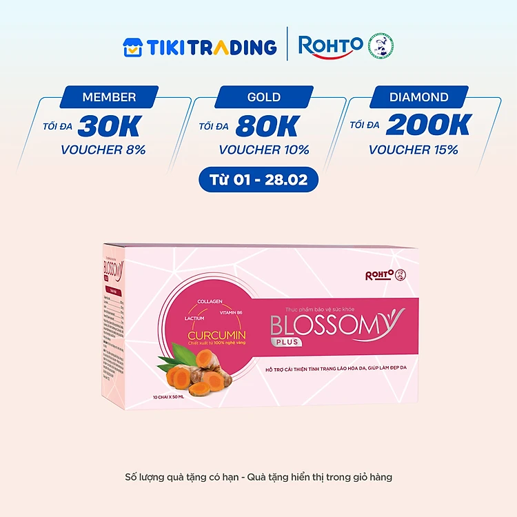 Nước uống collagen giúp sáng da, dạ dày khỏe Blossomy lốc 10 chai x 50ml