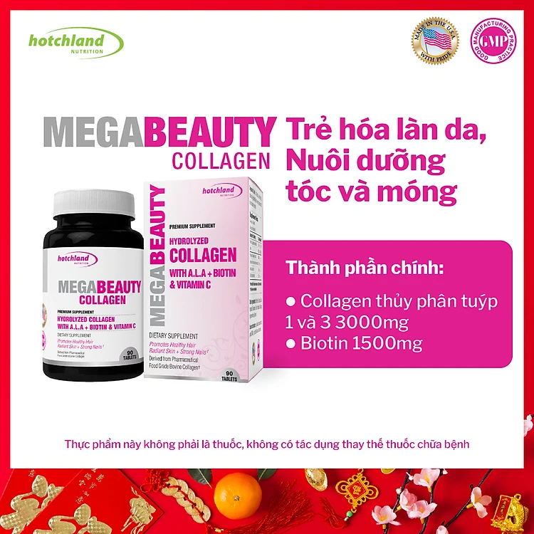 Viên uống Collagen giúp da trắng sáng tự nhiên MegaBeauty - Hàng chính hãng Hotchland Nutrition Việt Nam [Hộp 90 Viên] - HL4653