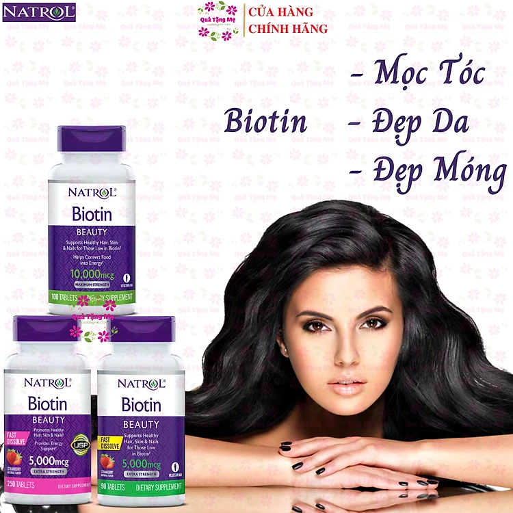 Biotin mọc tóc Natrol Beauty Mỹ hỗ trợ tóc mọc nhanh hơn, dày hơn, cho mái tóc khỏe mạnh, làn da rạng rỡ và móng tay chắc khỏe - QuaTangMe Extaste