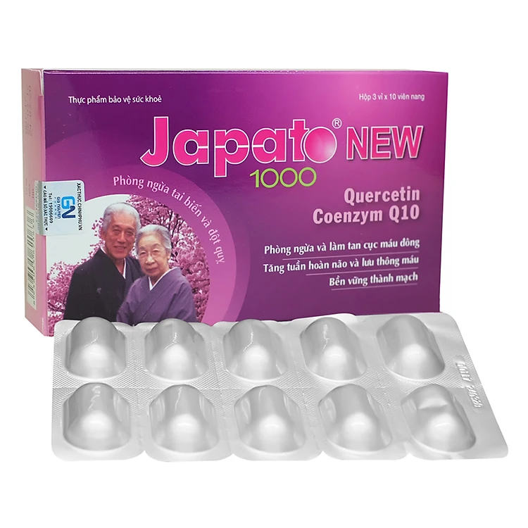 - Thực Phẩm Chức Năng Bảo Vệ Sức Khỏe Việt Đức - Viên Uống Ngăn Ngừa Tai Biến Và Đột Quỵ Japato New J002 (30 Viên) chứa thành phần Nattokinase, Rutin, Quercetin, bạch quả, Coenzyme Q10, Vitamin B1, B6, B9...