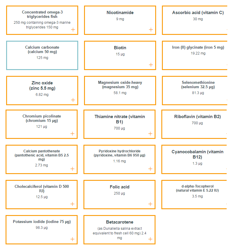 - Axit folic - Theo hướng dẫn ở Úc * sản phẩm này chứa 500 μg axit folic, vì phụ nữ có độ tuổi sinh đẻ 400-500 μg folic acid mỗi ngày ít nhất một tháng trước khi mang thai và trong 3 tháng đầu của thai kỳ.