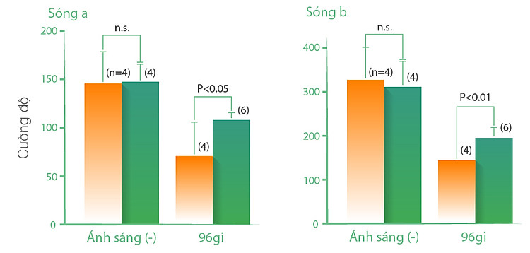 Các chỉ số điện võng mạc đồ bao gồm cường độ sóng a và sóng b đều tăng lên khi sử dụng Broccophane