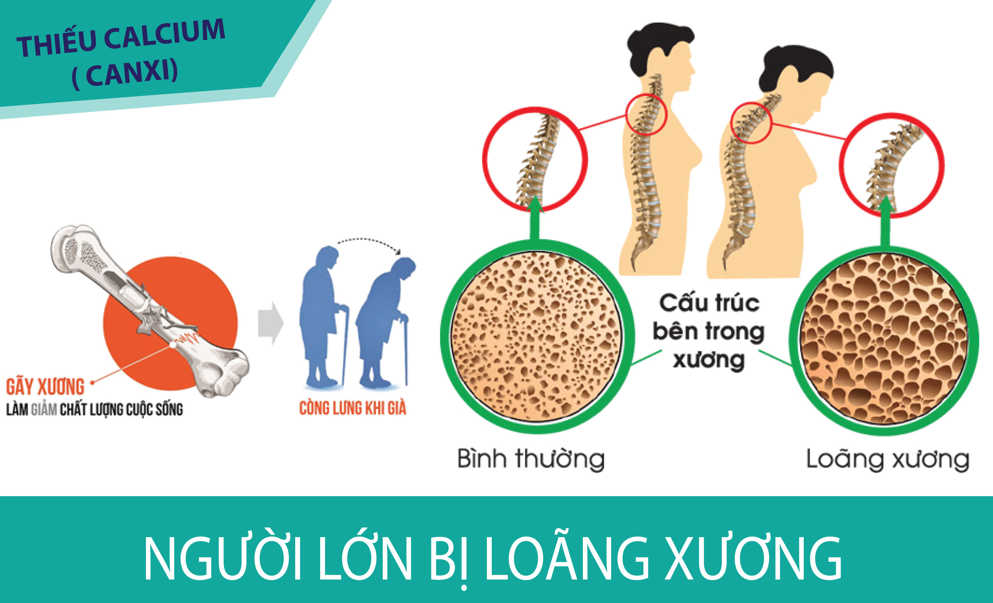 · Người lớn, đặc biệt là người tuổi cao, phụ nữ tiền mãn kinh hoặc đã mãn kinh, nếu thiếu canxi mạn tính sẽ dẫn đến giảm trọng lượng xương, tăng quá trình tiêu xương, loãng xương, dễ gãy xương khi bị va chạm nhẹ.