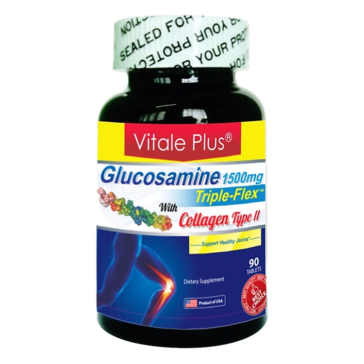 - Thực Phẩm Chức Năng Glucosamine Triple Flex Hỗ Trợ Điều Trị Thoái Hóa Khớp với thành phần chủ yếu là Glucosamine và được bổ sung thêm Collagen Type II để mang đến hiệu quả tốt nhất cho người dử dụng. Giúp tái tạo sụn khớp, dịch khớp, tăng cường sự dẻo dai, khỏe mạnh của khớp, hỗ trợ giảm đau khớp trong các trường hợp thoái hoá khớp, khô khớp, giãn dây chằng, bong gân.