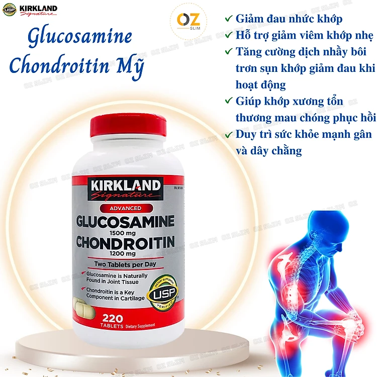 Glucosamine 1500mg Chondroitin 1200mg Kirkland Signature Mỹ- Giảm các triệu chứng đau nhức xương khớp hiệu quả - OZ Slim Store