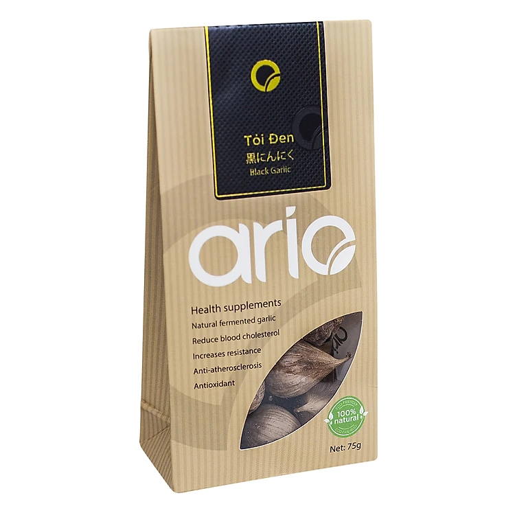 Thực Phẩm Chức Năng Tỏi Đen Cô Đơn Ario Gói 75g được sản xuất từ tỏi ta. Được lựa chọn những củ Tỏi có chất lượng tốt nhất, sau quá trình lên men đặc biệt dài ngày Tỏi đen Ario được tạo ra với những đặc tính quý giá mà tỏi thường không có được.