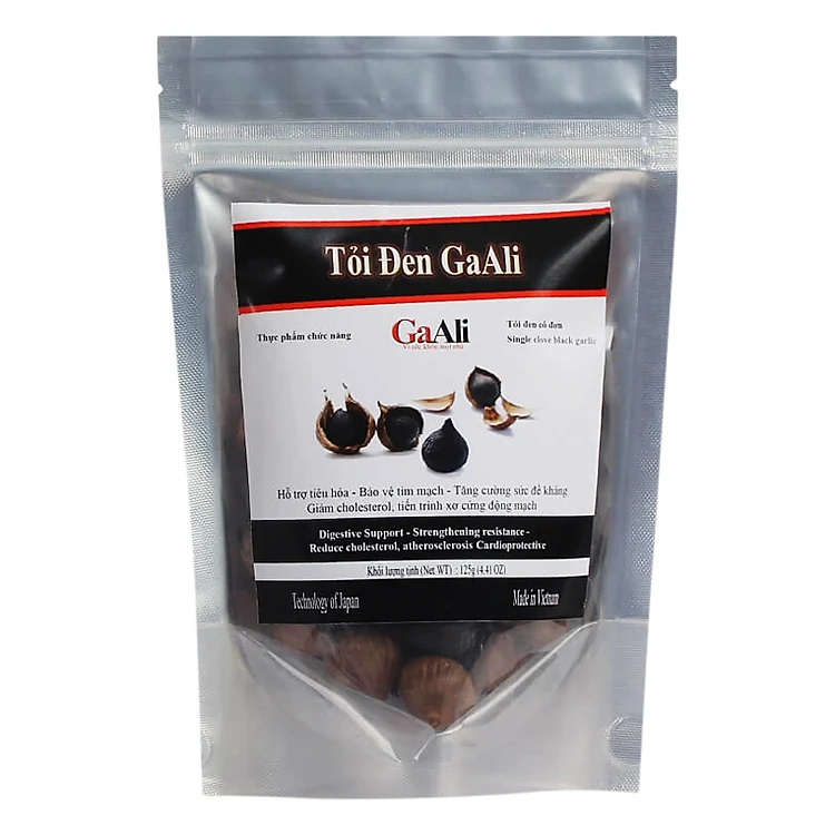 Thực Phẩm Chức Năng Tỏi Đen Cô Đơn GaAli Túi Nhôm 125g được sản xuất từ tỏi ta. Được lựa chọn những củ Tỏi có chất lượng tốt nhất, sau quá trình lên men đặc biệt dài ngày Tỏi đen GaAli được tạo ra với những đặc tính quý giá mà tỏi thường không có được. Tỏi một nhánh, hay còn gọi là Tỏi cô đơn , tỏi mồ côi . Đây là một loại tỏi quý của Việt Nam,tỏi một nhánh tươi đã tốt nay được lên men thành tỏi đen còn tốt hơn gấp nhiều lần.