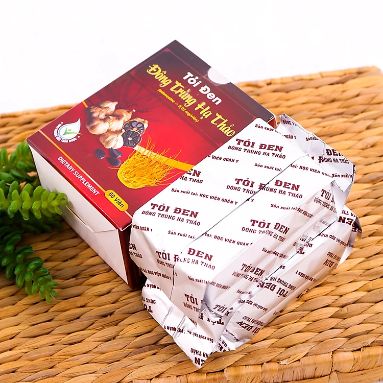 - Thực Phẩm Chức Năng Tỏi Đen Đông Trùng Hạ Thảo Học Viện Quân Y giúp bồi bổ cơ thể, nâng cao thể lực, tốt cho người bị suy nhược, mệt mỏi, ốm yếu. Tăng cường sức khỏe, giúp giảm cholesterol máu, hạn chế xơ vữa mạch do cholesterol máu.