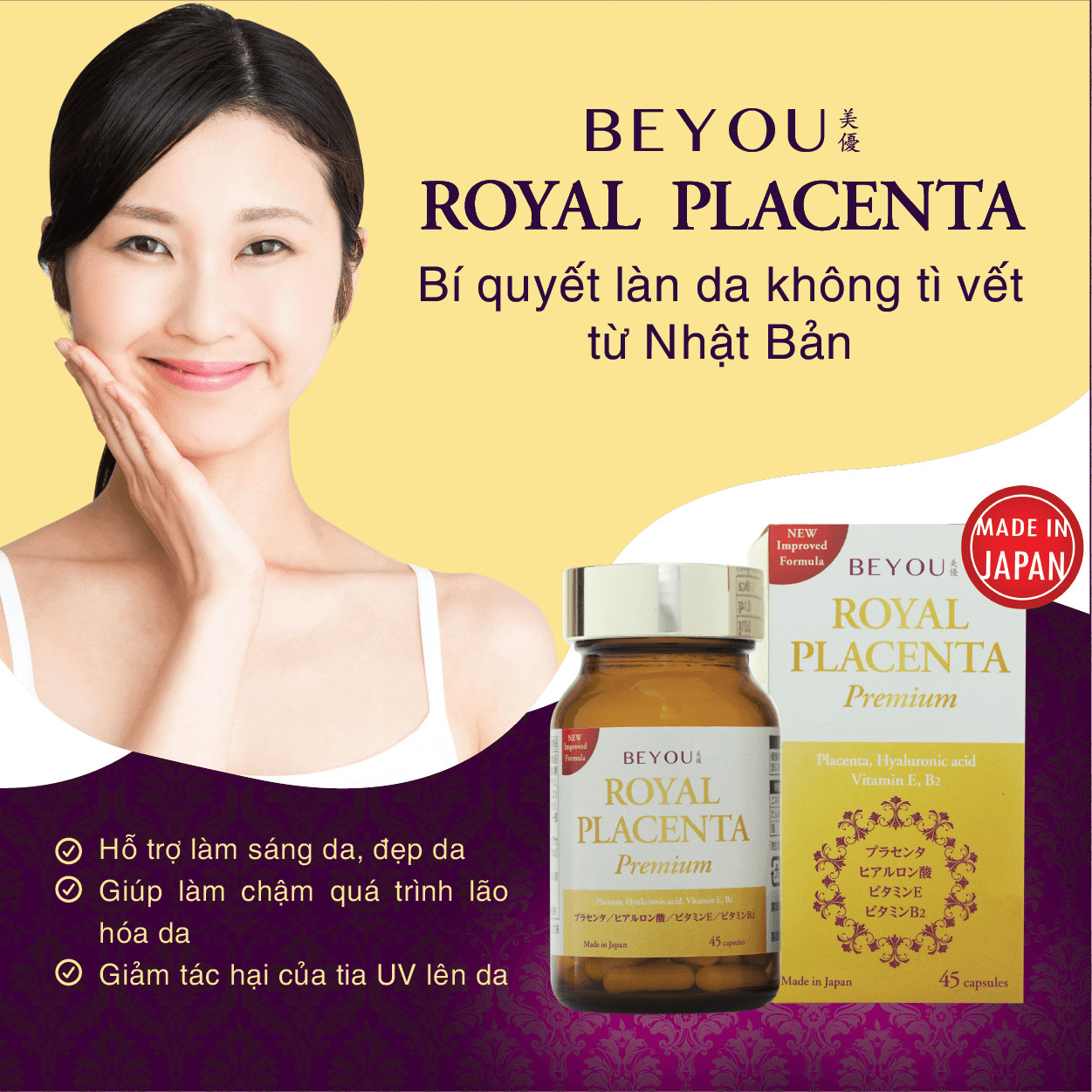 Sản phẩm Beyou Royal Placenta với công thức cải tiến đặc biệt chứa những thành phần thiết yếu cho làn da gồm: tinh chất nhau thai, acid hyaluronic là một siêu dưỡng chất giữ ẩm, vitamin E và B2 từ công ty Dược phẩm Waki Pharma – Nhật Bản, có truyền thống từ năm 1882 sẽ giúp phái đẹp bảo vệ làn da của mình an toàn.