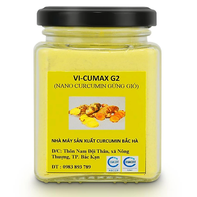Thực phẩm chức năng Vicumax G2 tinh bột nghệ Nano Curcumin kết hợp với cây gừng gió hỗ trợ điều trị cảm mạo, say nắng, làm mát, giảm mệt mỏi 1 lọ 150g