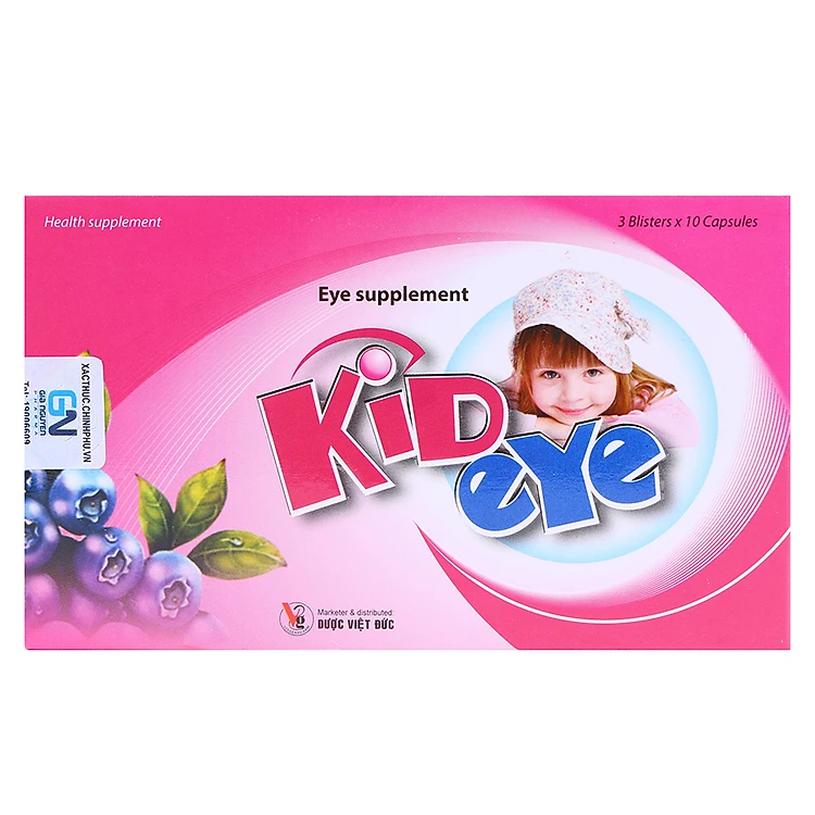 - Thực Phẩm Chức Năng Viên Uống Bổ Mắt Kideye K003 (3 Vỉ x 10 Viên) giúp tăng cường thị lực, chống mỏi, mờ mắt, hạn chế sự lão hóa của mắt, duy trì sức khỏe cho đôi mắt.
