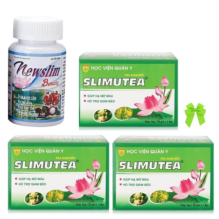 Thực phẩm chức năng Viên uống Hỗ trợ giảm cân đẹp da lá sen và trà lá sen học viện quân y Việt nam ( 1Newslim + 3 trà slimutea) và nơ