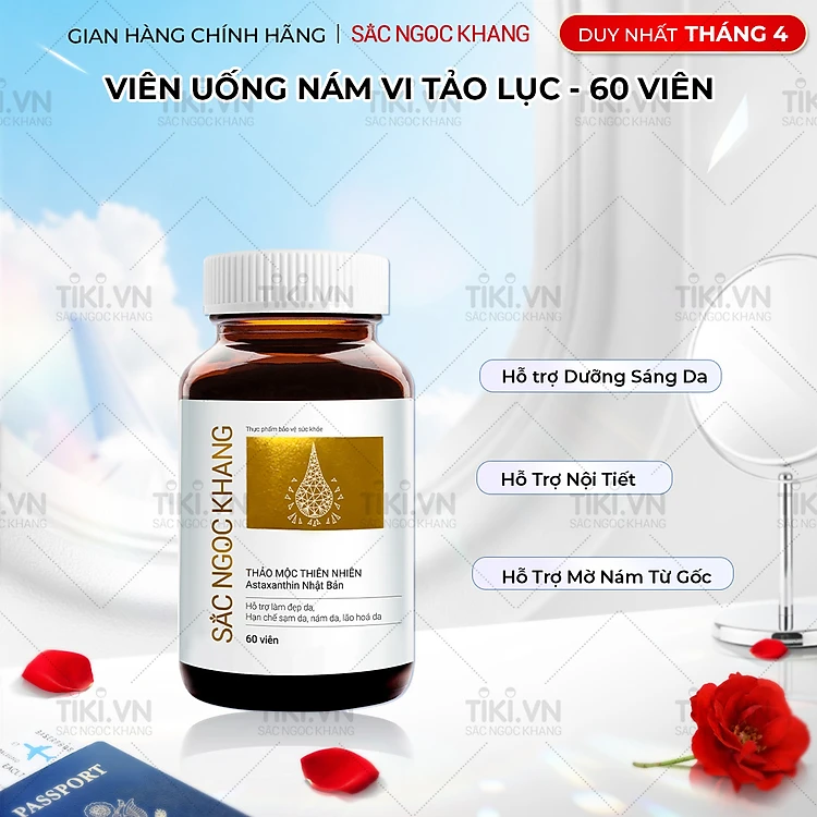 Viên uống Sắc Ngọc Khang Vi tảo lục (60 viên) giúp trẻ hóa làn da xua tan vết nám, hỗ trợ cân bằng nội tiết tố, bổ huyết, điều kinh, hỗ trợ giảm các triệu chứng tiền mãn kinh