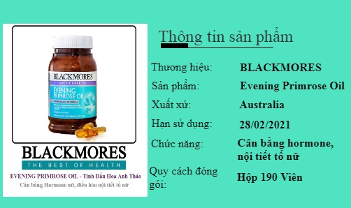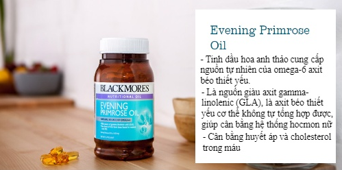 - Tinh dầu anh thảo (EPO) 1g (1000mg) cung cấp acid gamma-linolenic (GLA) 1g (1000mg)