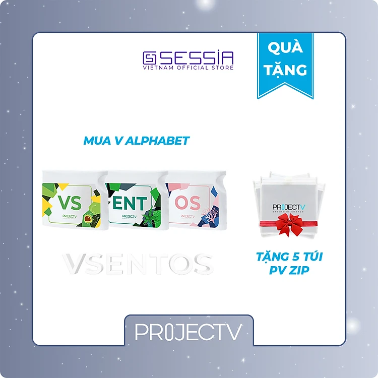 [TẶNG 5 TÚI PV ZIP] Thực Phẩm Sức Khoẻ VS+ENT+OS | V Alphabet - Điều hòa huyết áp, Giảm đau khớp, Ngừa loãng xương - PROJECT V - Xuất xứ Pháp, Hàng Chính Hãng