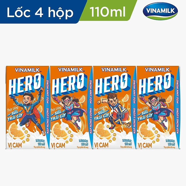 THỨC UỐNG SỮA TRÁI CÂY HERO VỊ CAM VINAMILK - HỘP X 110ML