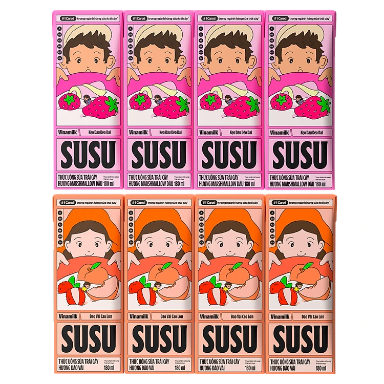 Thức uống sữa trái cây Susu Hương Mashmallow Dâu - Hương Đào Vải Vinamilk Hộp 180 ml