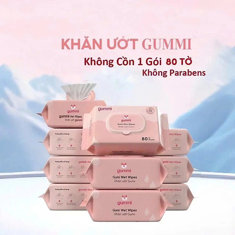 Thùng 10 Gói Khăn Ướt GUMI Không Cồn Không Paraben, Không Chất Huỳnh Quang, An Toàn Cho Da Nhạy Cảm – 80 Tờ - HÀNG CHÍNH HÃNG MINIIN
