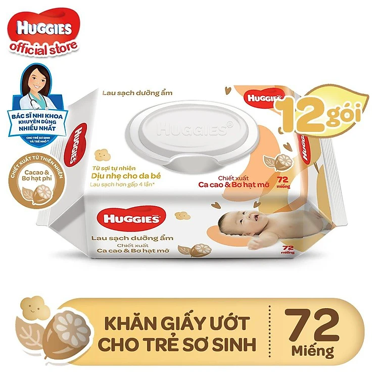 Thùng 12 gói khăn giấy ướt cho trẻ sơ sinh HUGGIES (Gói 72 tờ) - Hàng chính hãng