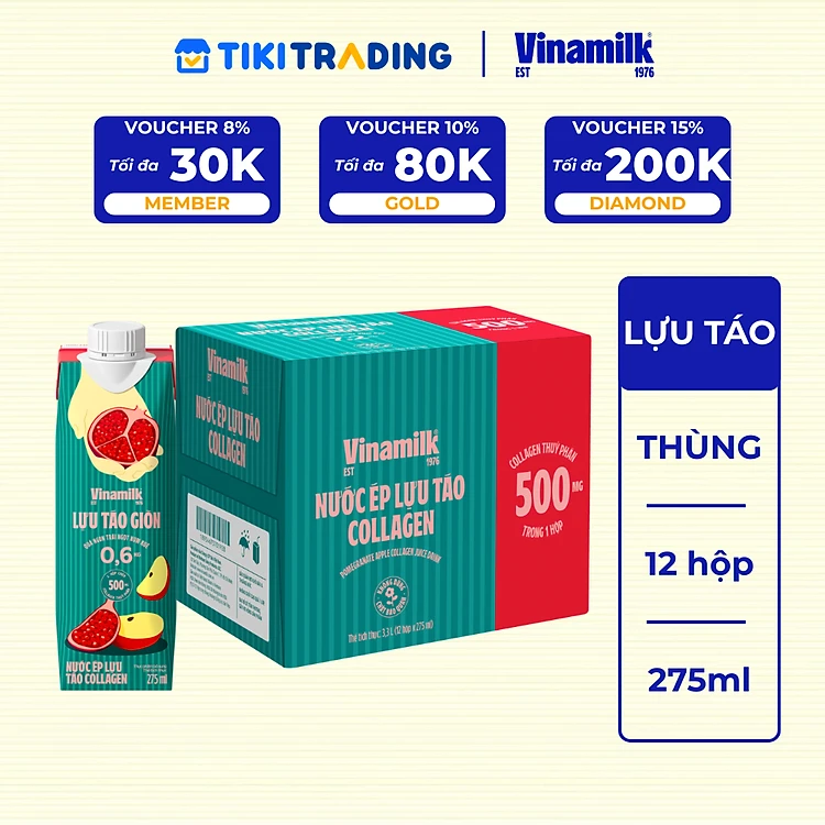 Thùng 12 hộp Nước ép Lựu Táo Collagen Vinamilk 275ml