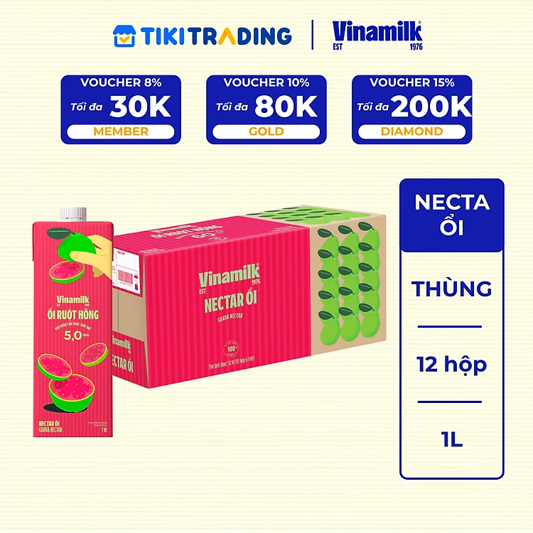 Thùng 12 hộp Nước Ổi Ép Necta Vinamilk - Hộp giấy 1L