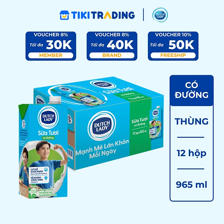 Thùng 12 Hộp Sữa Tươi Tiệt Trùng Dutch Lady Cô Gái Hà Lan Có Đường (12 X 965ML)