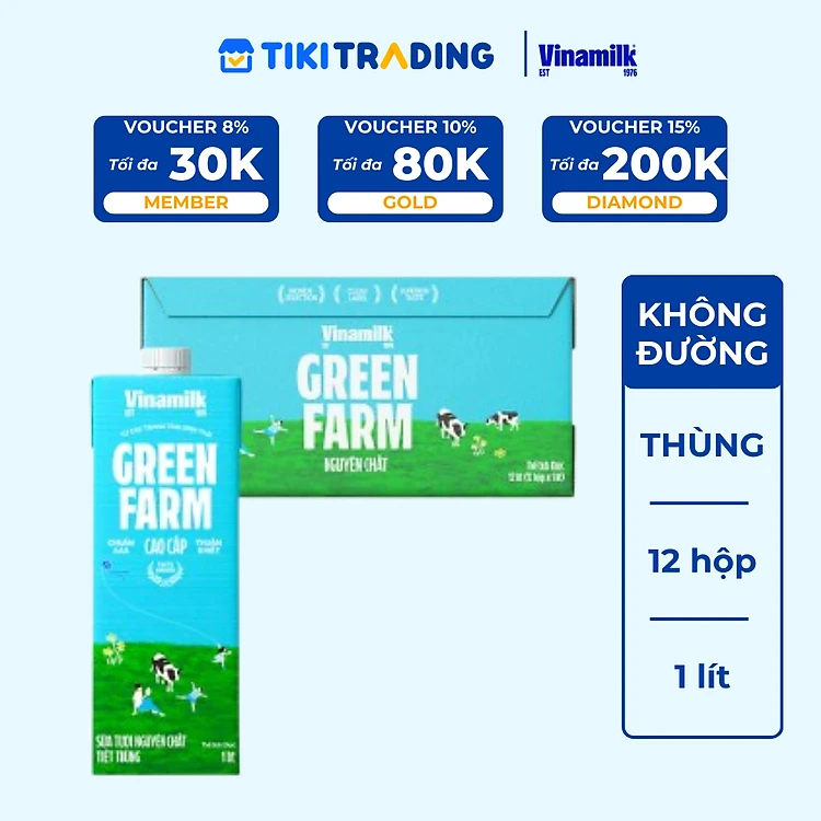 Thùng 12 Sữa tươi tiệt trùng Không đường Vinamilk Green Farm - hộp 1L