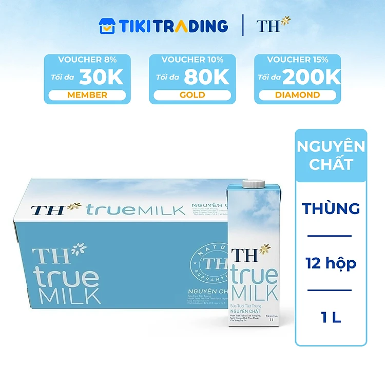 Thùng 12 hộp sữa tươi tiệt trùng TH True Milk nguyên chất 1 Lít
