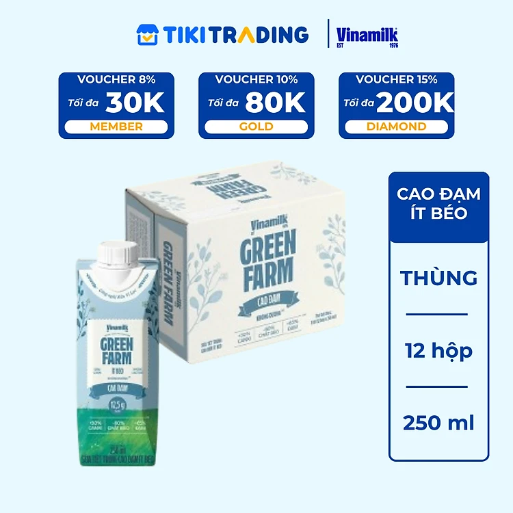 Thùng 12 hộp Sữa tươi Vinamilk Green Farm cao đạm ít béo 250ml