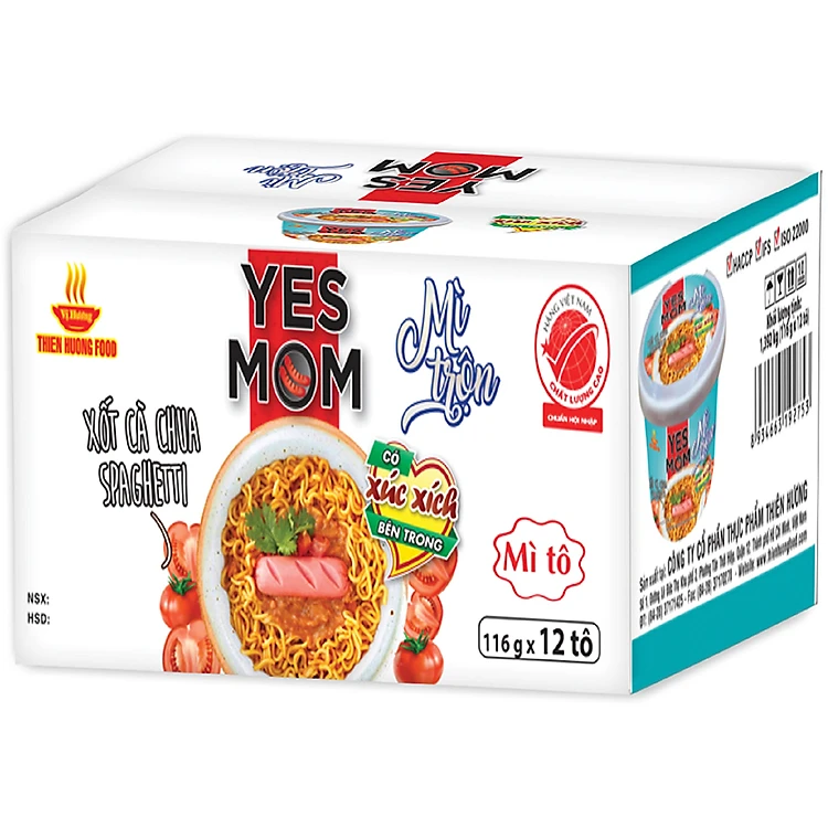 - Thùng 12 Tô Mì Trộn Yesmom Có Xúc Xích Spaghetti có cây xúc xích thật bên trong.