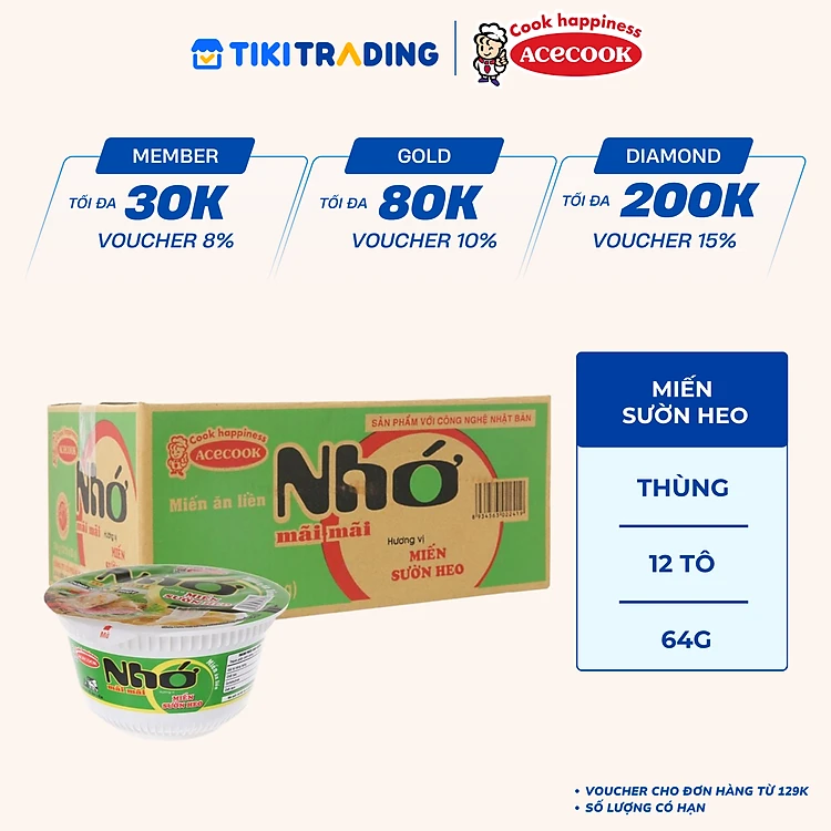 Thùng 12 Tô Miến Sườn Heo Nhớ Mãi Mãi 64g