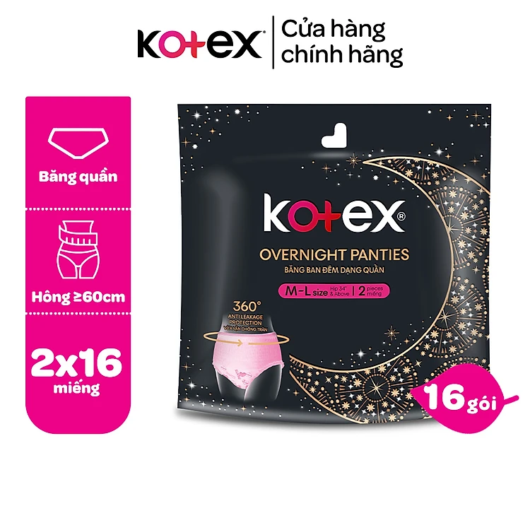 (Thùng 16 gói) Kotex đêm dạng quần cõ M/L 2 quần