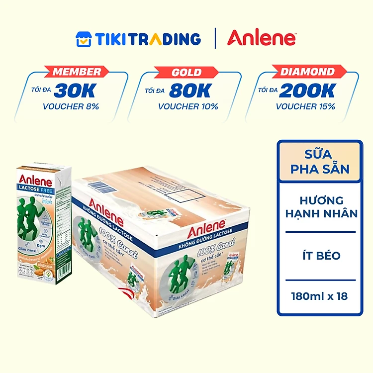 Thùng 18 hộp sữa Anlene không đường Lactose vị hạnh nhân (18 x 180ml)