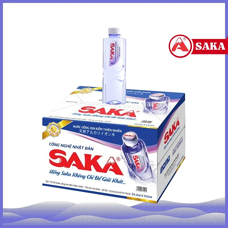 Thùng 24 Chai Nước Uống Ion Kiềm Đóng Chai Saka 355ml - Nước uống Detox với Công Nghệ Điện Phân Ion Kiềm Nhật Bản