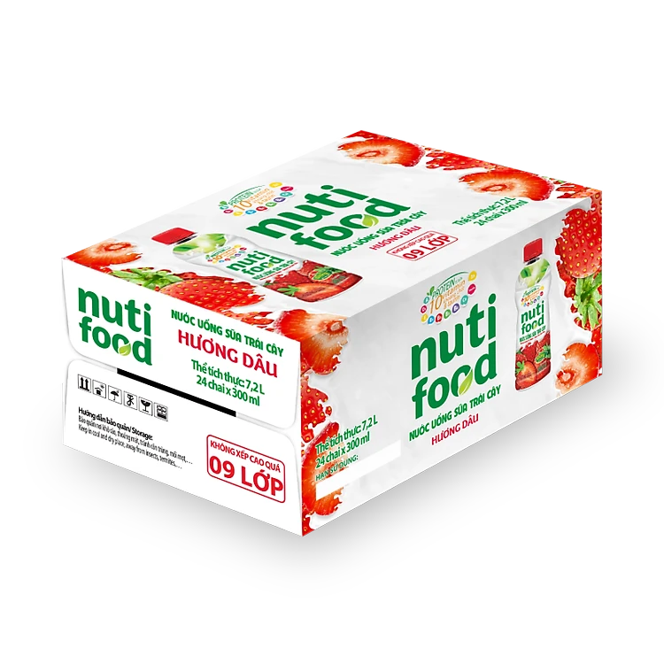 Thùng 24 chai Nước uống Sữa trái cây Nuti hương Dâu chai 300ml TU.NTD01TI NUTIFOOD