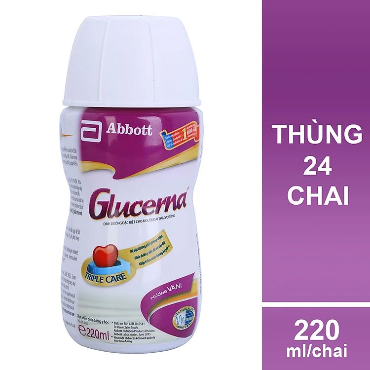 • Glucerna là sản phẩm dinh dưỡng đầy đủ và cân đối cho người đái tháo đường và tiền đái tháo đường, với công thức tiên tiến (Công thức cải tiến) và hệ dưỡng chất đặc chế Triple Care được chứng minh lâm sàng (dùng như một phần của chương trình quản lý đái tháo đường bao gồm chế độ ăn hợp lý và tập thể dục) giúp kiểm soát tốt đường huyết, tăng cường sức khỏe tim mạch.