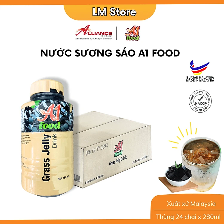 Thùng 24 chai thức uống sương sáo thanh mát kèm thạch A1 Food Grass Jelly Drink 280ml - Nhập khẩu Malaysia