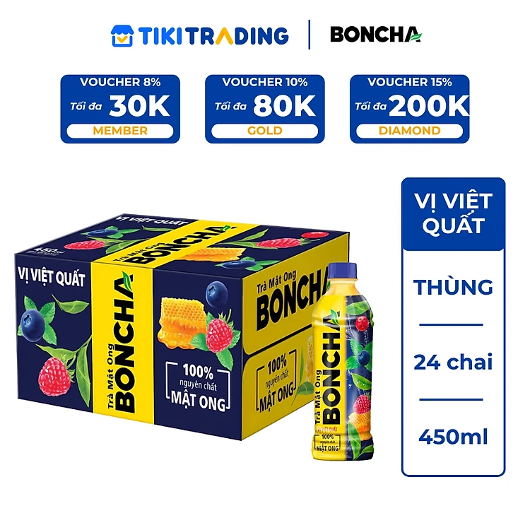 Thùng 24 Chai Trà Mật Ong vị Việt Quất BONCHA 450ml bao bì Tết