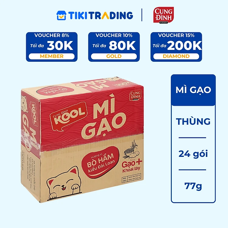 Thùng 24 Gói Mì Cung Đình Kool Mì Gạo Bò Hầm Kiểu Đài Loan 77g